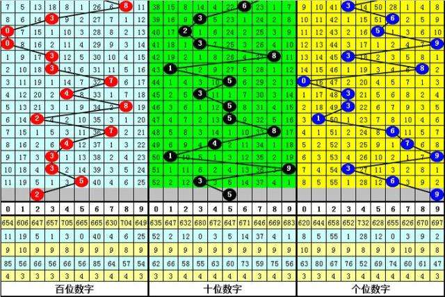 百位分析:该位上期奖号为5,出现2路、奇数、大号,在前11期奖号,该位012路比为4:4:3,012路号码出号相当,目前012路号码遗漏期数分别为1、3和0,近期百位注意2路号码走热。