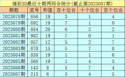 福彩3D第2023088期两位合分析: