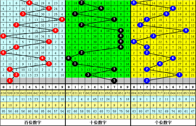 上期第二位奖号为:3,间隔13期之后开出,走势较温,前10期该位热码开出次数较少,本期注意该位热码逐渐回暖,关注号码7。