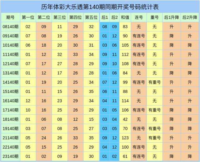 和值分析:在历史同期开奖中,前区和值出现范围在42-123之间,区间内的最大波动差值为81,其中大数和值开出频次较高,共出现了9次,当前小数和值开出了6年,今年同期预计和值继续走小。