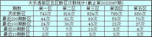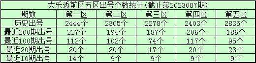 体彩大乐透第23087期奖号开出:03 04 16 19 24+04 05,前区五区比为2:0:2:1:0,大小比为2:3,后区奇偶比为1:1,大小比为0:2。