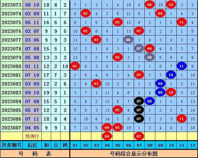 后区:上期开出号码04、05,最近10期后区号码大小比开出14:6,奇偶比开出14:6,本期后区看好出现一奇一偶组合,单挑两码04+07。