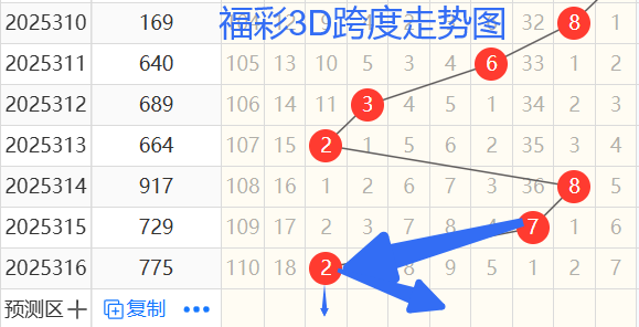 依次是32872跨度,按照路数转换关系来看,那么跨度我们暂定258369跨 ,本期个人比较看好2 5 跨。