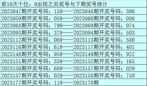 百位:上期开出号码1,遗漏1期,目前该位遗漏最大的号码为9,遗漏28期,本期没有解冻的迹象。