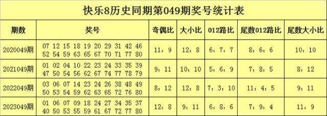 沧海快乐8第2024049期历史同期奖号尾数分析