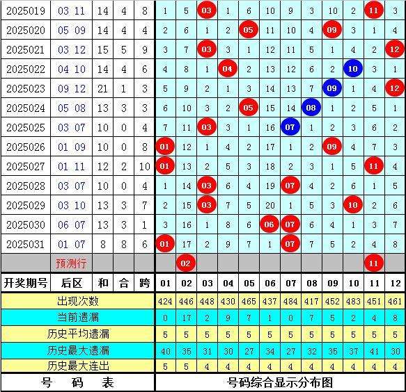 后区判断:上期后区奖号为01和07,开出热码+热码组合。最近十期后区开出13个热码、5个温码和2个冷码,本期预计奖号关注冷码+温码组合,参考两码02、11。