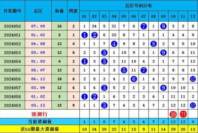 后区第二位:前10期开出奖号:其中奇数号码开出5次,偶数号码开出5次,奇偶走势持平,本期注意奇数号码出现。参考号码11。
