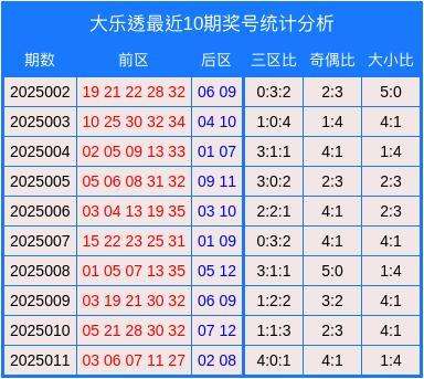 开奖回顾:大乐透第2025011期奖号为:03、06、07、11、27 + 02、08。