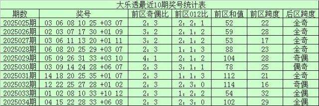 大乐透第2025034期开奖,前区:04、15、22、28、33;后区:06、08。其中前区和值为102,跨度为29,012路比为2:3:0,奇偶比为2:3,后区开出全偶、0路+2路组合。