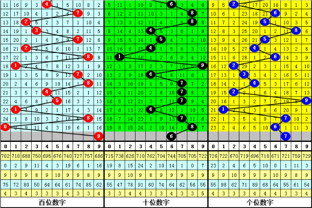 从以上统计可以看出,在组选分布图中,号码0开出18次,1开出13次,2开出12次,3开出16次,4开出14次,5开出11次,6开出15次,7开出15次,8开出18次,9开出21次,号码奇偶比为76:77,奇偶号码出现比例基本相当,本期看好奇号转热,奇偶比为2:1;号码大小比为:80:73,大号表现相对活跃,本期看好大号继续热出,大小比参考3:0。