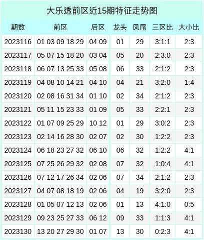 其中前区三区比0:2:3,大小比为4:1,龙头号码为13,凤尾号码为30,后区开出【1、2】区、【小、大】数。
