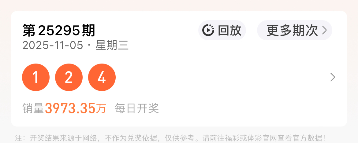 上一期295期排列三开出组六号码124