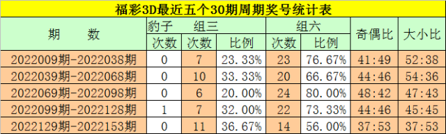 另外,组六出现4次,组六出现较少,本期注意组六号码。