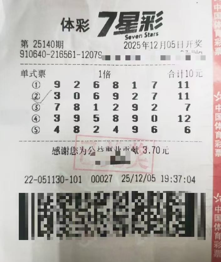 12月5日晚,体彩7星彩第25140期开奖号码揭晓,号码"3、0、6、9、2、7+11"为宁夏银川彩民带来了一份年终惊喜。全国当期仅中出的2注一等奖中,1注花落银川市xxxx体彩销售实体店。12月8日上午,幸运得主刘先生(化名)现身宁夏体育彩票管理中心,顺利办理了500万元大奖的兑奖手续。