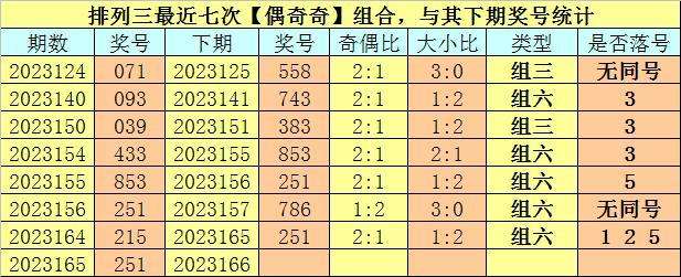 开奖回顾:排列三第2023165期开奖号码为:251。奖号类型为:组六,大小类型为:小大小,奇偶类型为:偶奇奇,包含重号:1 2 5。