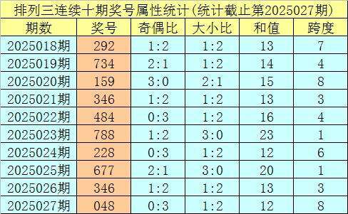 上期回顾:排列三第2025027期奖号:048。类型:组六,奇偶形态:偶偶偶,大小形态:小小大,和值:12,跨度:8。