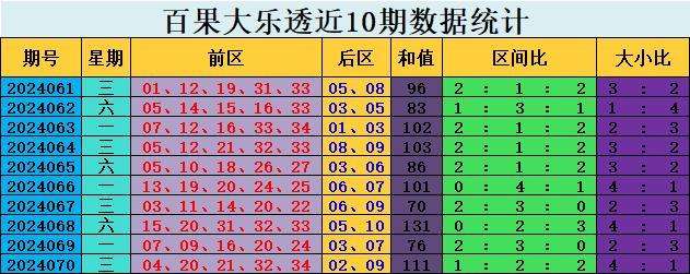 071期百果大乐透预测奖号:和值分析