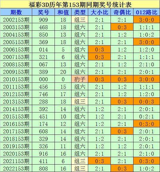 组选类型判断:在第153期历史同期开奖中,组六开出16次,组三开出4次,豹子开出1次,今年同期看好开出组六号码。
