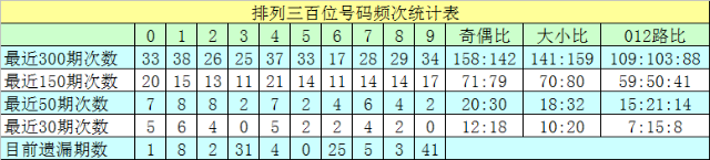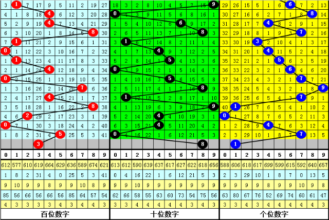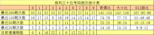 个位号码:前50期走势最活跃的号码为:7开出10个,4、6开出9个;走势最冷的号码为:0、1、2开出2个。个位号码大小比开出31:19,奇偶比开出24:26。本期个位排除两码:3、4,关注号码0、1、6,胆码参考1。