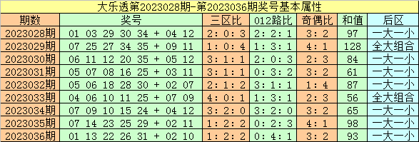 大乐透第2023037期前区三区分析(个人习惯把前区划分为:一区01-12段,二区13-24段,三区25-35段):