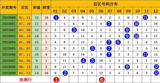 上期开出后区号码:02 12,偶偶组合。十期内出现1次偶偶组合,4次奇奇组合,4次奇偶组合,1次偶奇组合,奇偶和奇奇组合较热,根据图表分析,本期预测奇偶组合开出,本期预测号码:01 03 06 09 10。精准推荐:01 06。