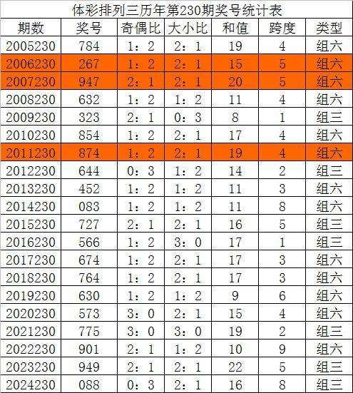 在历年排列三第231期开奖中:组三号码出现4次,组六号码出现15次。组六号码出现比例略高,本期奖号形态参考:组六号码。