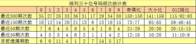 十位号码:前50期走势最活跃的号码为:4开出8个,0开出7个,1、8开出6个;走势最冷的号码为:7开出1个,2、6、9开出4个。十位号码012路比开出20:15:15,大小比开出20:30。本期十位排除两码:1、6,参考号码2、3、5,胆码关注3。