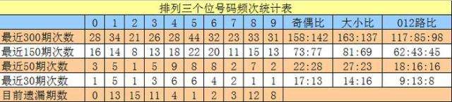 百位号码:前50期走势活跃的号码为:1开出10个,8开出9个,3、4开出6个;走势最冷的号码为:5、7开出2个,2开出3个。奖号012路比开出18:18:14,奇偶比开出24:26。本期百位杀排除:1、5,注意号码0、2、3,胆码参考0。