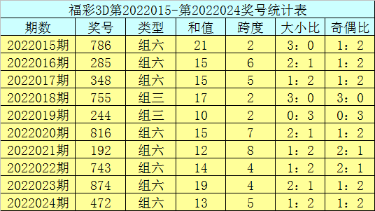 开奖回顾:福彩3D第2022024期奖号:472。