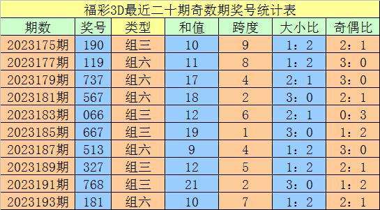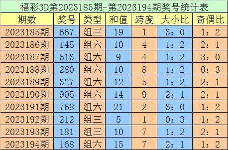 上期回顾:福利彩票3D第2023194期开出奖号168。奖号类型:组六,大小形态:小大大,奇偶形态:奇偶偶。