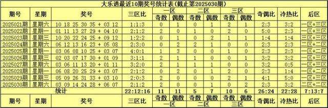 综上所述,大乐透第2025031期前区三区比看好2:1:2。