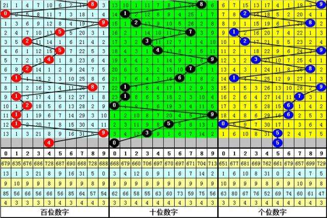 3、在以上0-9号码频次中,号码012路比为30:15:27,奇偶比为28:44,本期预计百位开出偶数号码,参考号码4。