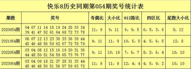 福彩快乐8第2024053期开奖回顾:02 04 05 10 21 23 25 31 33 35 37 46 53 62 63 69 75 78 79 80,其中奖号奇偶比为13:7,大小比为9:11,012路比为6:7:7,四区比为4:7:2:7,和值为831,跨度为78。