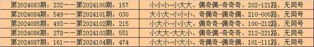 排列三第2024100期-第2024104期连续5期奖号为:157-030-215-551-474。
