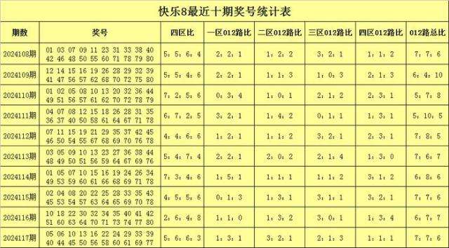 福彩快乐8第2024117期开奖回顾:05 06 10 13 16 22 24 29 33 39 40 44 45 50 56 58 60 61 69 77,其中奖号四区比为5:6:6:3,012路比为7:7:6,和值为757,跨度为72。