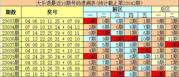 大乐透第2023043期定位遗漏分析: