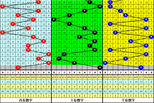 从以上统计可以看出,百个位两码合差9与9同时出现之后其下期两码合差表现最热的4个分别为:0136,本期百个位两码合差可以参考这四码中的数据。