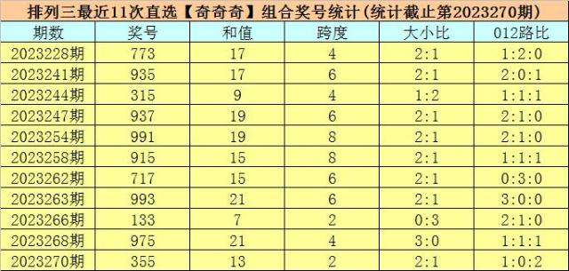 开奖回顾:排列三第2023270期开出奖号:355,类型为组三,和值为13,奇偶比为3:0,大小比为2:1,跨度为2。