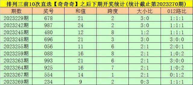 3。在前10次【奇奇奇】类型奖号开出之后,其下期奖号分别开出:688、977、400、666、066、088、933、955、544、244;