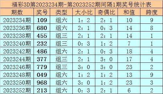其中大小比1:2,奇偶比2:1,和值10,跨度6。