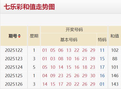 近五期七乐彩开奖号码和值依次为102→88→101→146→143。周期和值均值为116。周期和值振幅为58,周期和值修正振幅为41。基于动态平衡干预以及波动趋势衡量,本期开奖和值推测区间为75-157。基于风险对冲策略,本期开奖和值区间缩水为95-150。