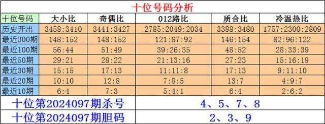 近期十位奇数表现活跃,目前遗漏1期,本期看好再出;该位温冷号码近期出现较少,上期开出温冷号码之后,本期预计温冷号码再出。十位杀号:4578,胆码关注:239。