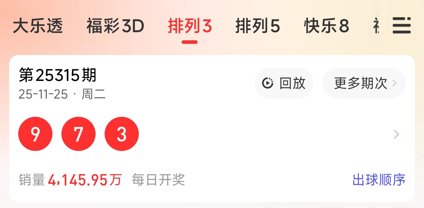 上期开出973,和尾为9,跨度为6,奇偶比为3:0,大小比为2:1,012路个数对比为2:1:0。