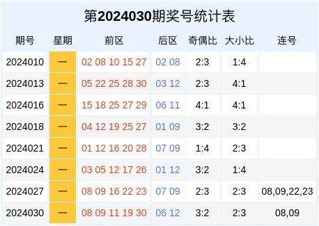 连号分析:上周一开出连码为08,09,近8周同星期一的奖号数据中,开出连码的概率为25。00%,本周一预测不会开出连码组合。