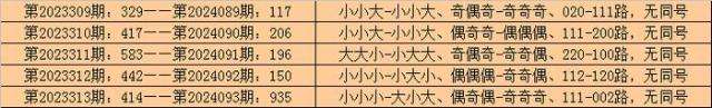 在排列三历史开奖中,第2023309期-第2023313期连续5期奖号为:329-417-583-442-414。