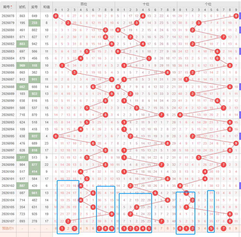 百位:百位开号上期开出了2,再往前一期开的是9,上期的振幅为7,本期振幅看好保持不变或者变很小,看好振幅在0到7之间;从开号位置来看,本期看好右边的号码,其次是左边的;从012路走势来看,上期开了2路,本期看好1路,其次是0路,防继续开2路;从奇偶数来看,上期开了偶数,本期看好奇数;