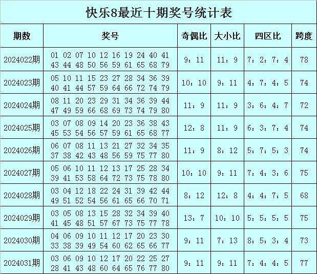 快乐8第2024032期奖号奇偶、大小分析
