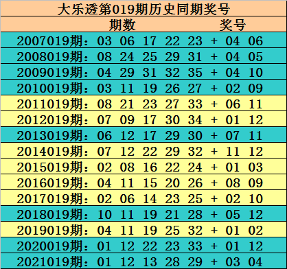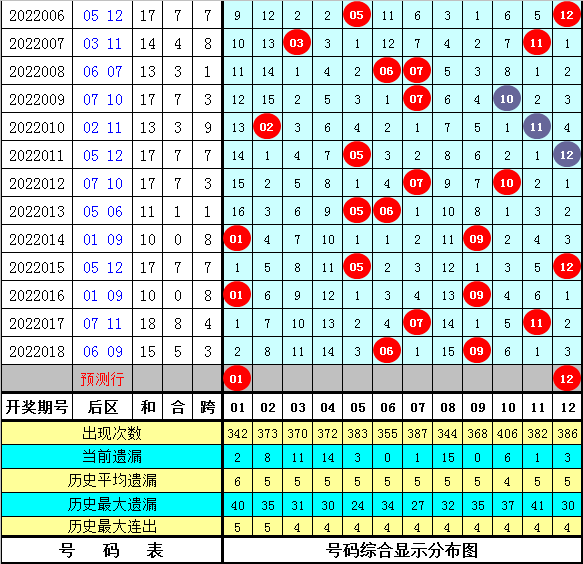 四、后区分析:在019期历史同期开奖中,后区全奇组合出现2次,全偶组合出现3次,一奇一偶组合出现10次;后区全大组合开出3次,全小组合开出5次,一大一小组合开出7次。本期后区两码关注01、12。