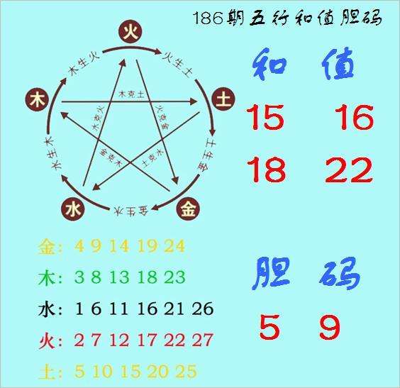 福彩3D第2023186期神算天五行和值胆码图
