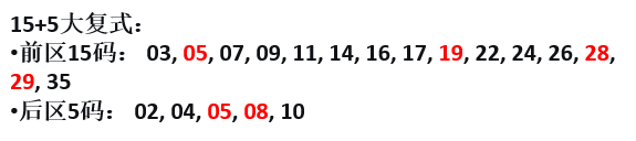前区15码: 02, 05, 07, 11, 14, 15, 16, 18, 20, 22, 24, 26, 28, 31, 34